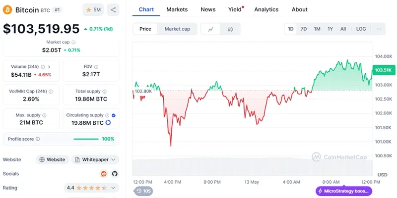 Le Bitcoin continue de défier les attentes, son prix ayant récemment dépassé le seuil des 100 000 dollars. Actuellement, il oscille autour de 103 519,95 dollars, en baisse de 0,71 % au cours des dernières 24 heures. Malgré cette légère baisse, la communauté crypto reste optimiste quant à l’avenir du Bitcoin. Plusieurs experts estiment que la véritable hausse des prix ne fait que commencer.