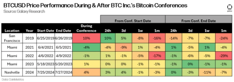 Le Bitcoin a enregistré de solides performances ces dernières semaines, mais historiquement, les conférences ont souvent déclenché des ventes massives ou des baisses de prix par la suite.