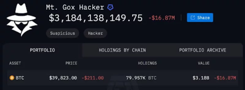 Fait remarquable, les analyses médico-légales estiment actuellement que le pirate de Mt. Gox est en possession de 79 957 BTC, d’une valeur de 3,18 milliards de dollars.