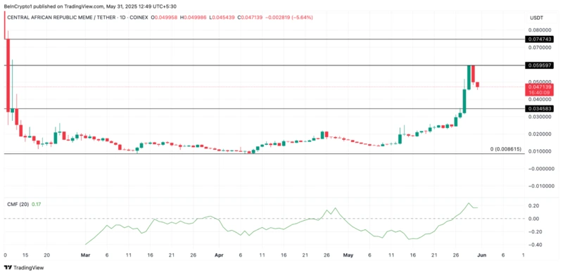 Cette cryptomonnaie officielle de ce pays africain a pris de l’ampleur après l’annonce d’un projet de tokenisation de 1 700 hectares de terres. Le CAR a bondi de 103 % la semaine dernière et se négocie autour de 0,047 $.