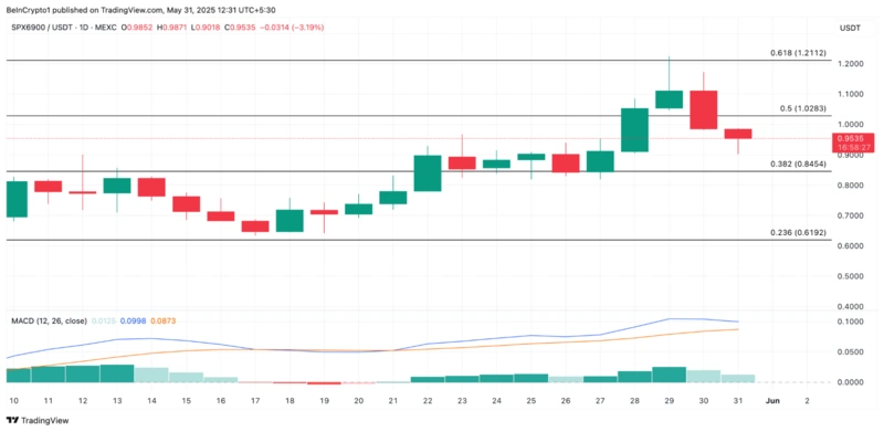 Malgré le ralentissement général du marché, SPX a enregistré une hausse de 11 % la semaine dernière, se négociant à près de 0,95 $. L’indicateur MACD (Moving Average Convergence Divergence) du jeton confirme la dynamique haussière, la ligne MACD se positionnant bien au-dessus de sa ligne de signal.