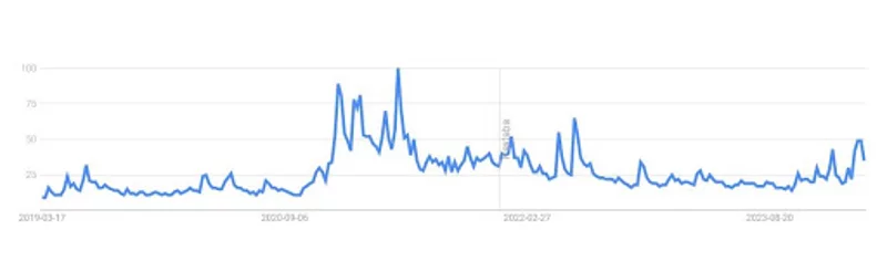 Si l’on se réfère aux données historiques, le record en matière d’intérêt de recherche a été établi il y a environ trois ans, en septembre 2021, lorsqu’il a atteint le chiffre impressionnant de 84.