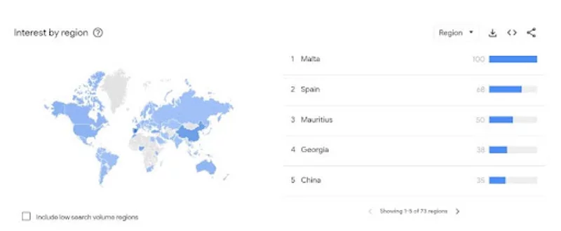 En outre, les analyses du géant de la technologie révèlent une répartition géographique intrigante de l’intérêt : Malte est en tête de liste des pays les plus intéressés par SOL, l’Espagne, l’île Maurice, la Géorgie et la République populaire de Chine montrant également une curiosité notable pour le jeton.