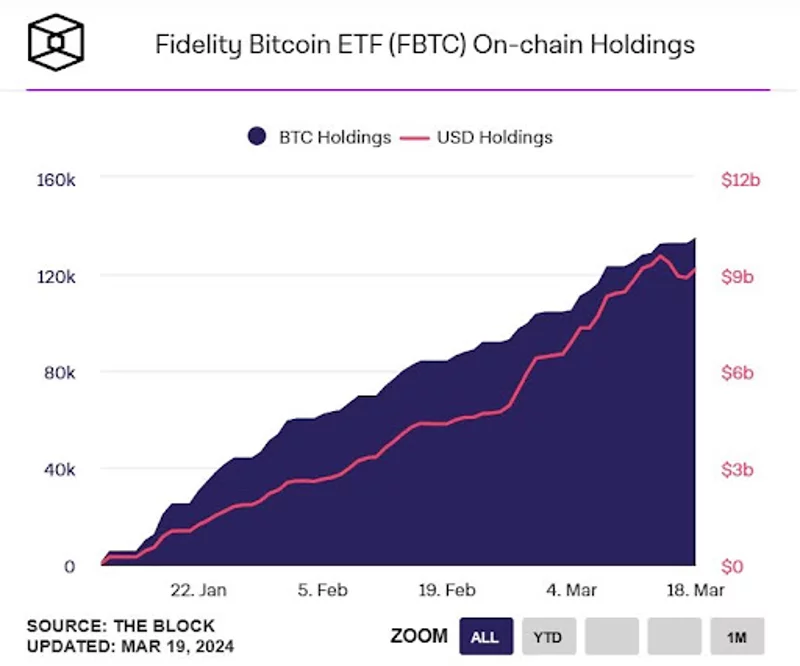 Après l’approbation de son ETF bitcoin au comptant en janvier, Fidelity a réussi à accumuler un nombre impressionnant de 132 570 bitcoins, ce qui correspond à une valeur d’actif supérieure à 9 milliards de dollars, marquant ainsi son entrée dans le domaine des produits négociés en bourse de crypto-monnaies au comptant.