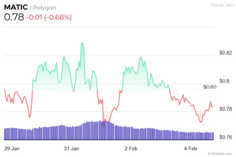 Lors de la dernière mise à jour, MATIC est évalué à 0,78 $, avec des pertes hebdomadaires d’environ 2 %.